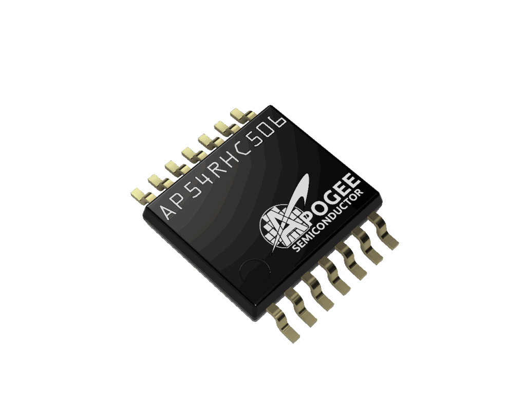 The AP54RHC506 is a radiation-hardened-by-design 5-bit bus transceiver with 3-state outputs for space, medical imaging, and high-energy physics applications, built on a 180 nm CMOS process with proprietary hardening for resilience to single-event effects and total ionizing dose up to 30 krad(Si). As a member of Apogee Semiconductor’s AP54RHC logic family, it operates from 1.65 V to 5.5 V supply and uses a fully triple-redundant architecture to provide immunity to single-event transients without external redundancy.
